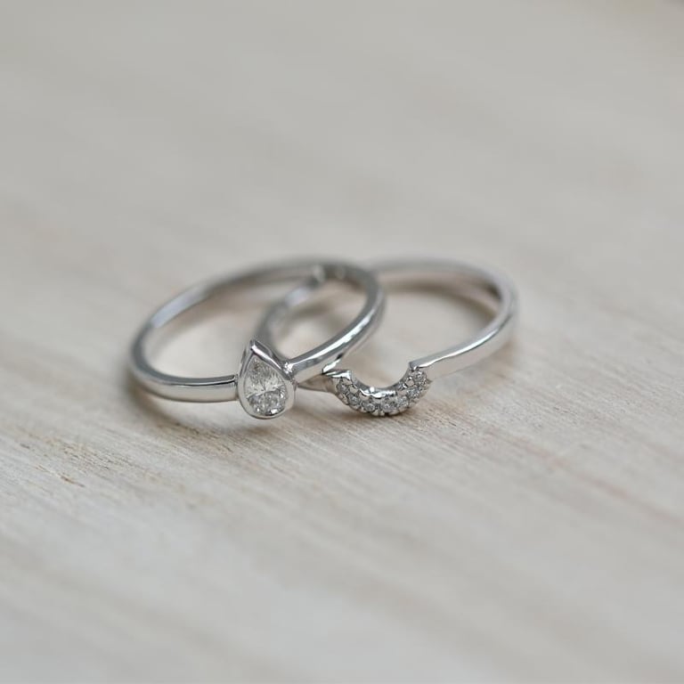 • wie dieses Ringset, das aus einem Verlobungs- und einem Ehering besteht
