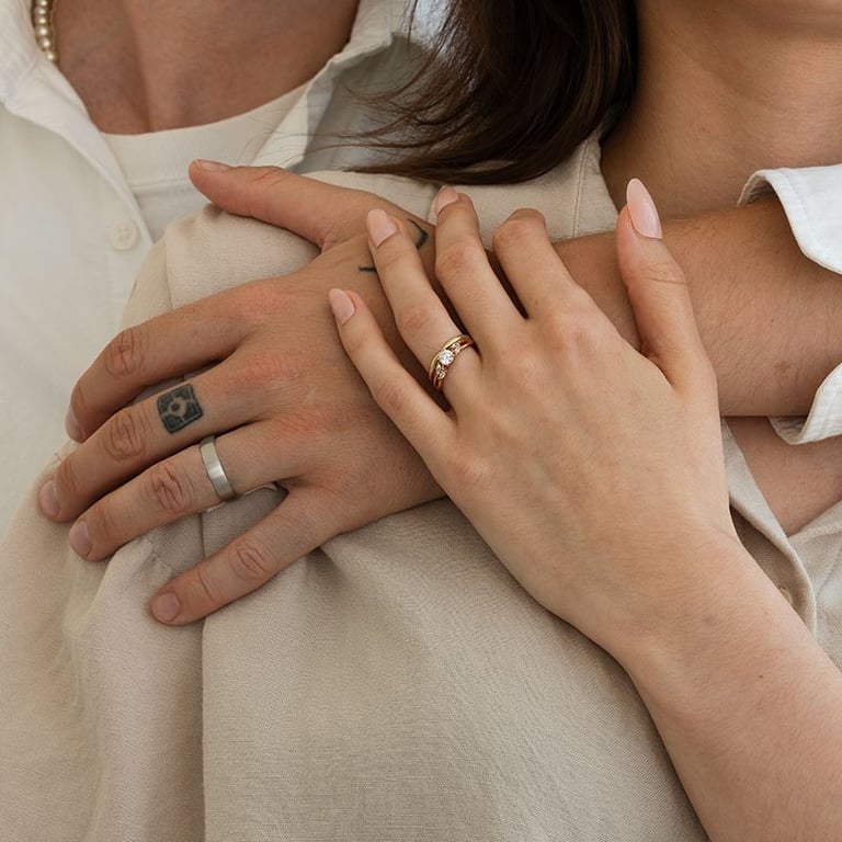 Wir stellen Schmuck aus im Labor gezüchteten Diamanten und recyceltem Gold, Silber oder Platin her. Wir wollen damit ein Zeichen setzen, dass Ethik und Nachhaltigkeit mit Luxus Hand in Hand gehen können.