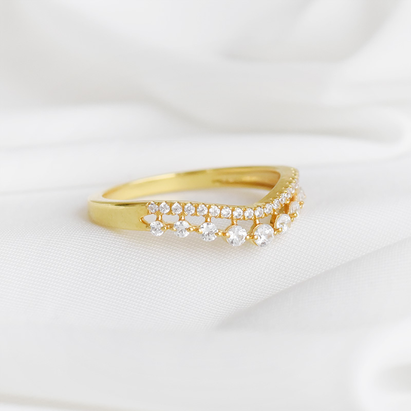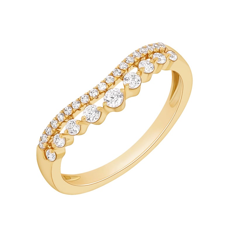 • der doppelte Ehering erweckt den Eindruck zweier übereinander liegender Diamantringe
