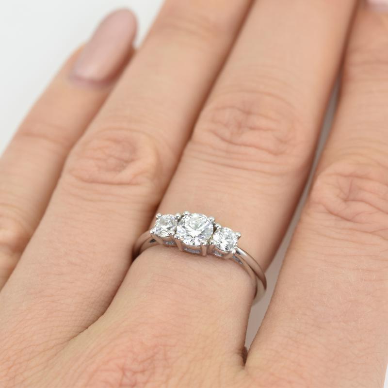 • der Verlobungsring ist mit einem Trio von Diamanten besetzt, die ihm ein reiches Funkeln verleihen
