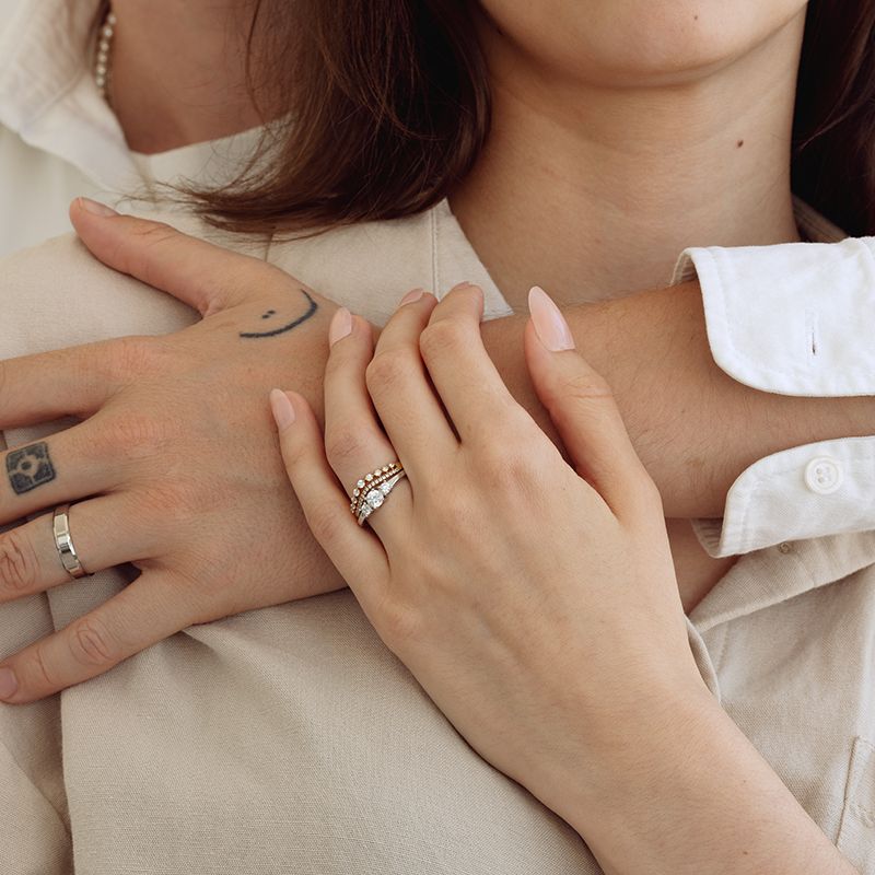 Wir stellen Schmuck aus im Labor gezüchteten Diamanten und recyceltem Gold, Silber oder Platin her. Wir wollen damit ein Zeichen setzen, dass Ethik und Nachhaltigkeit mit Luxus Hand in Hand gehen können.