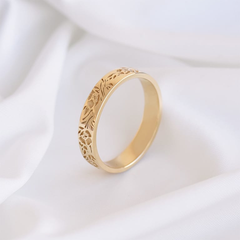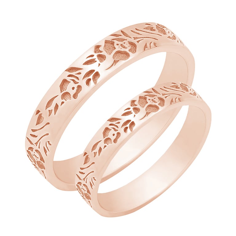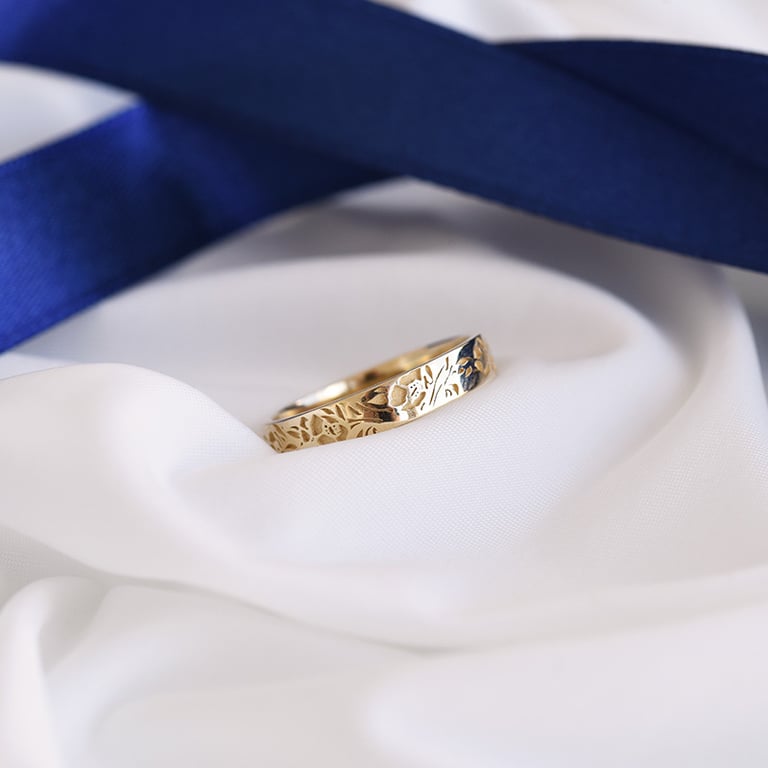 • die meisterhafte Blumengravur macht aus den Ringen ein kleines Kunstwerk