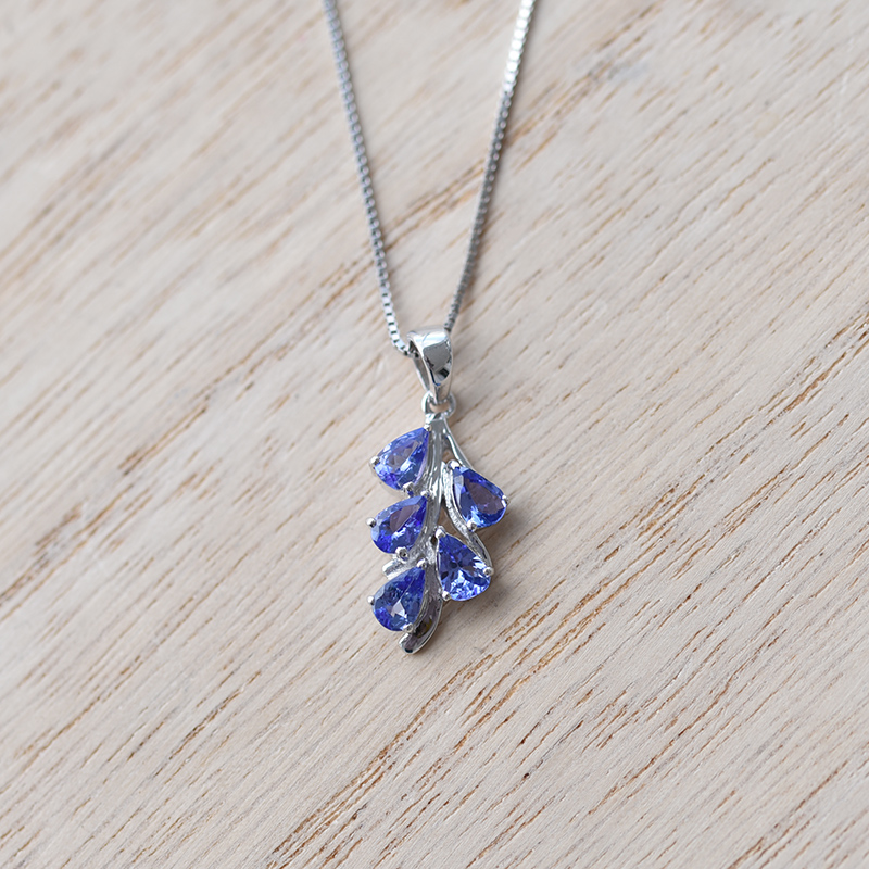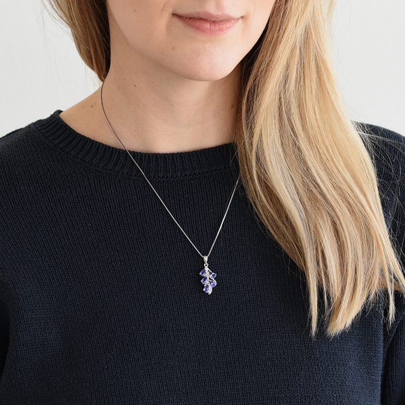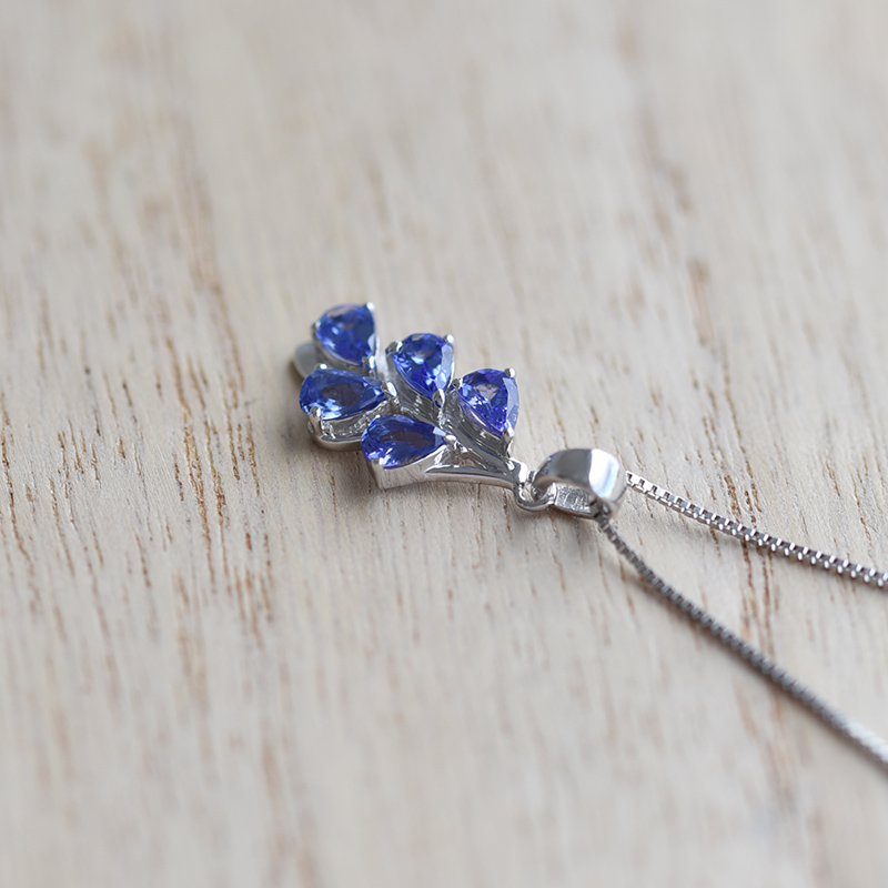 • die sanfte Anhänger mit einer ätherischen Silhouette ist mit azurblauen Tansaniten besetzt
