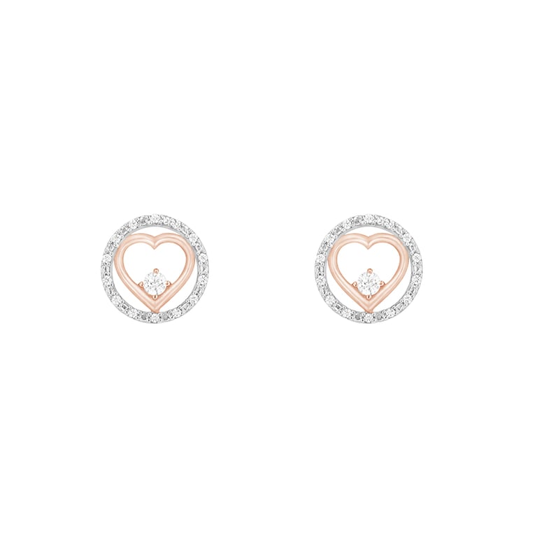 • bezaubernde Ohrringe mit Diamanten, die das Symbol von Karma und Herz in sich verbinden
