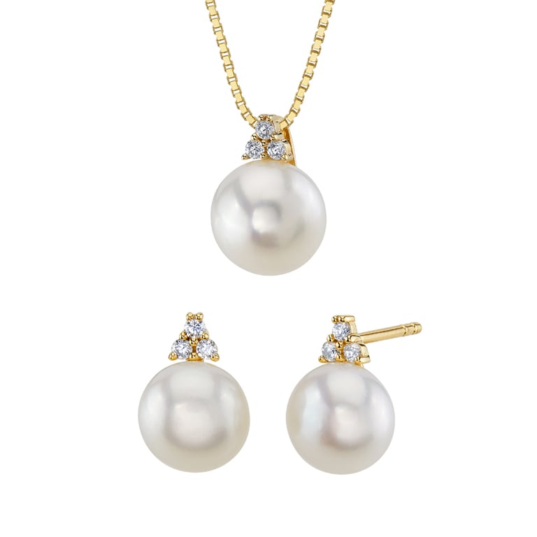 • das Schmuckset hat eine klassische Kombination aus Gold, runden Perlen und Zirkonen in eine moderne Form gebracht