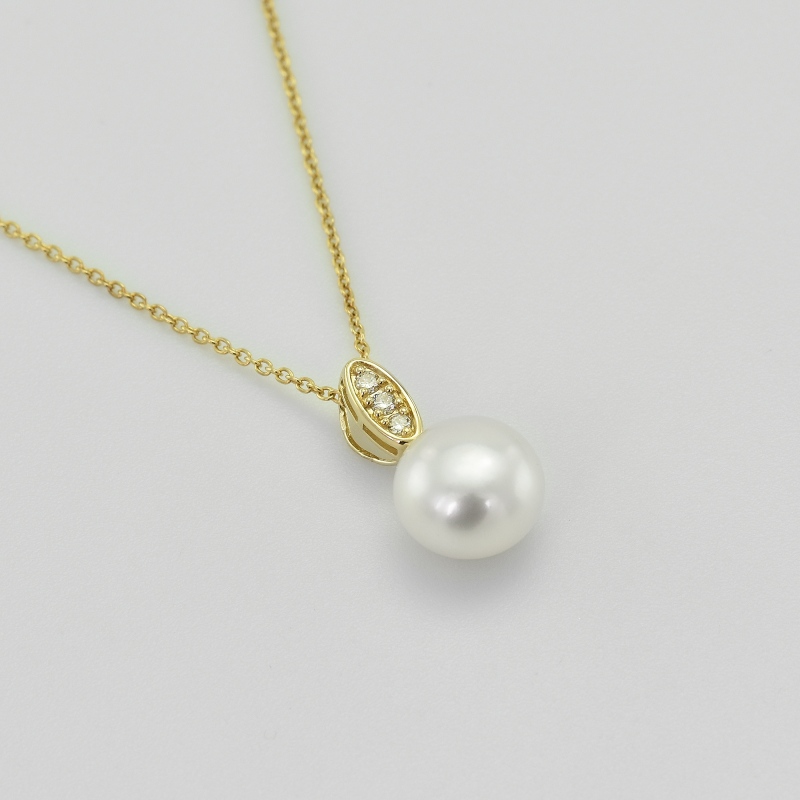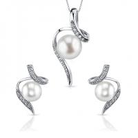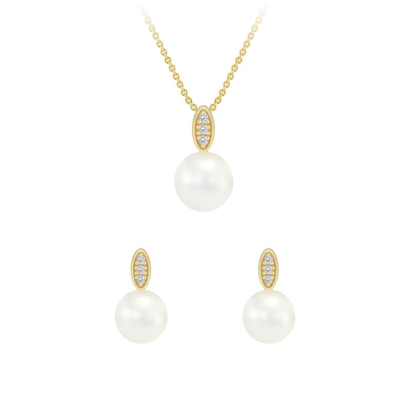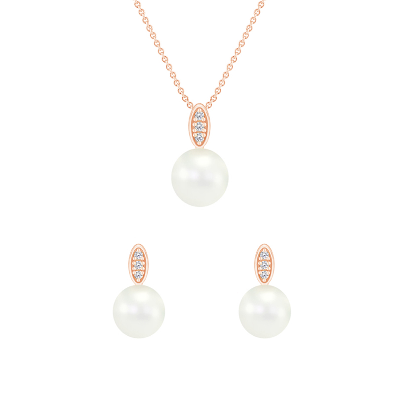 • ein Schmuckset mit funkelnden Diamanten und weißen Perlen
