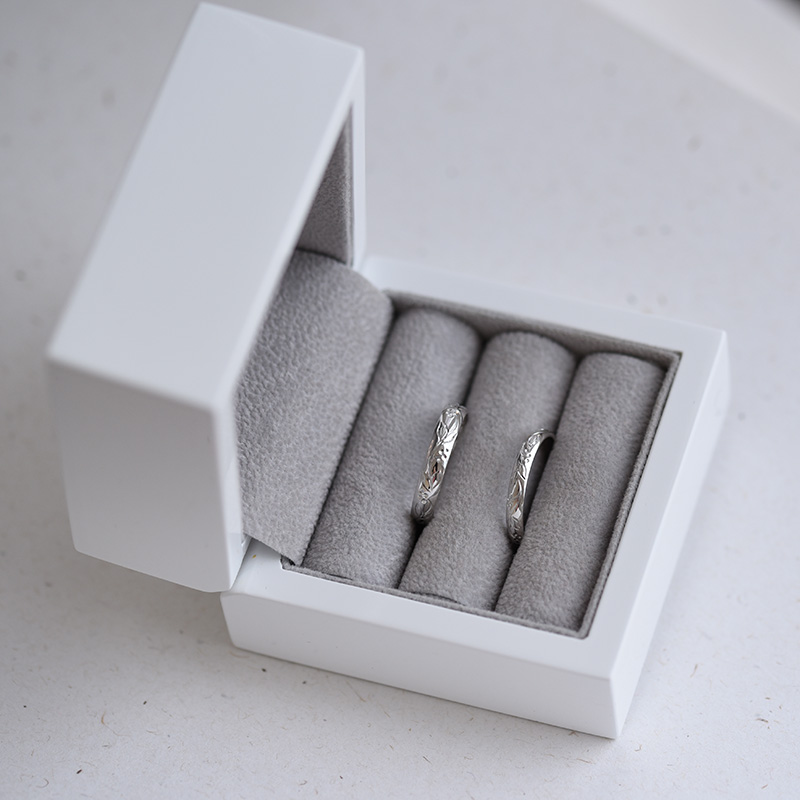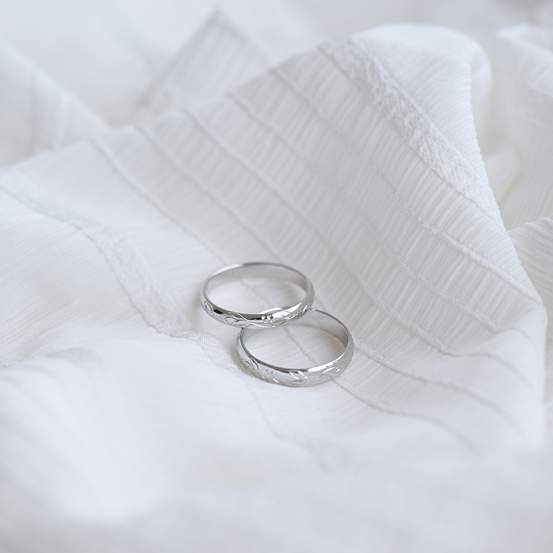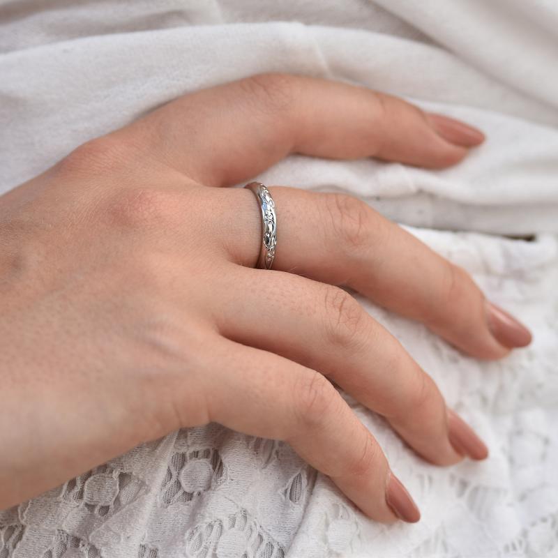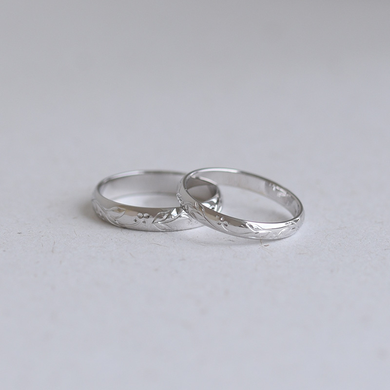 • romantische Vintage-Eheringe mit Blumengravur aus Weißgold