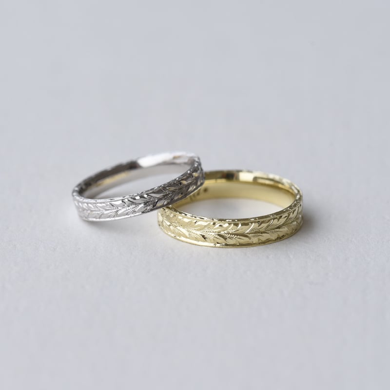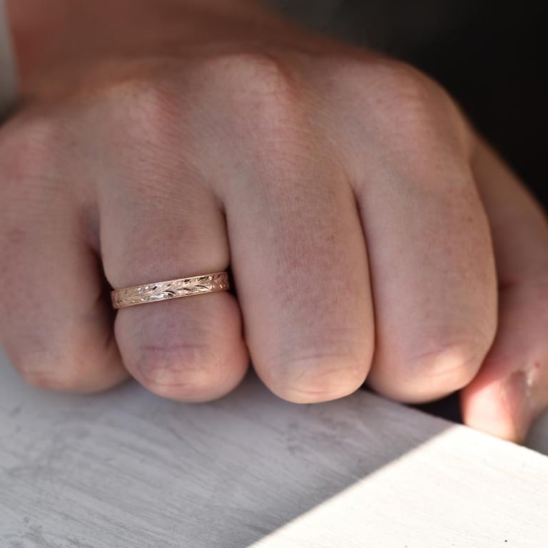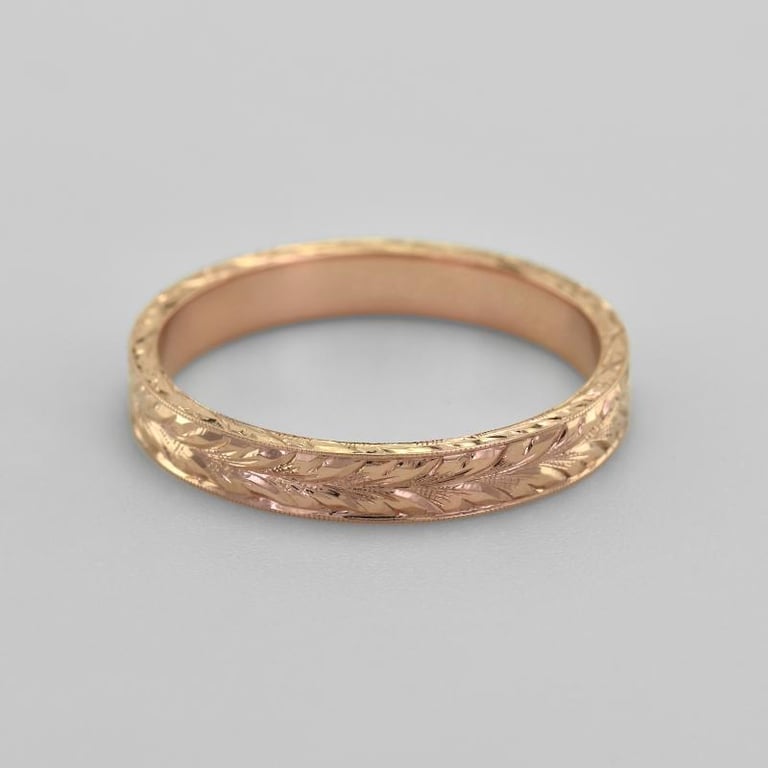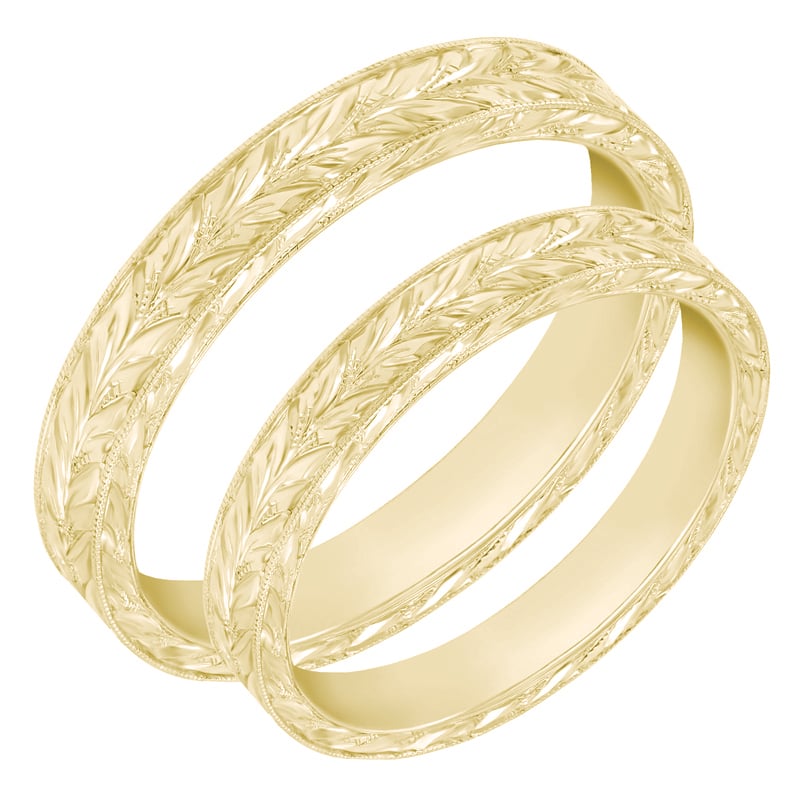 Romantische Vintage-Eheringe aus Gold mit Gravur Hannu