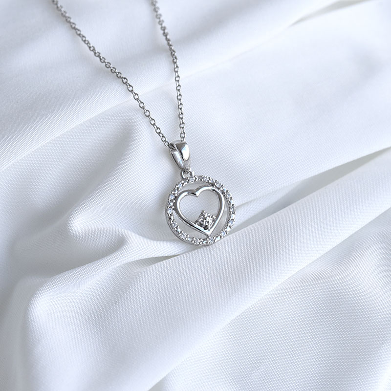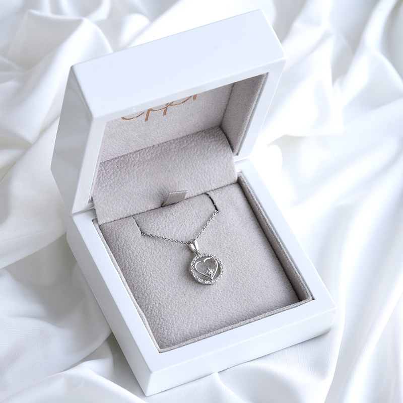 • ein Herz mit einem Diamanten umschlossen von einem Ring als Symbol der Verbindung und des Schutzes