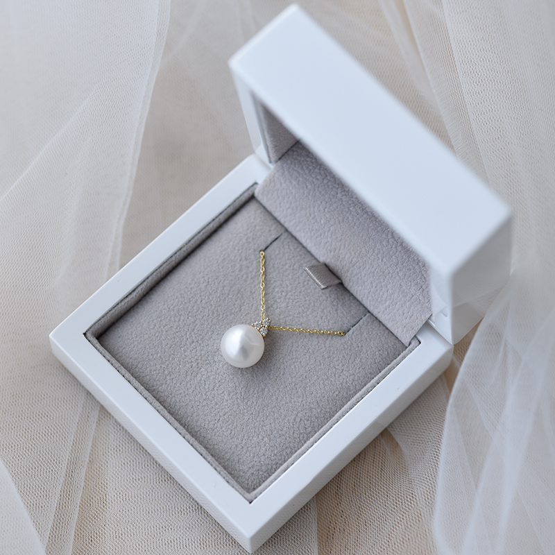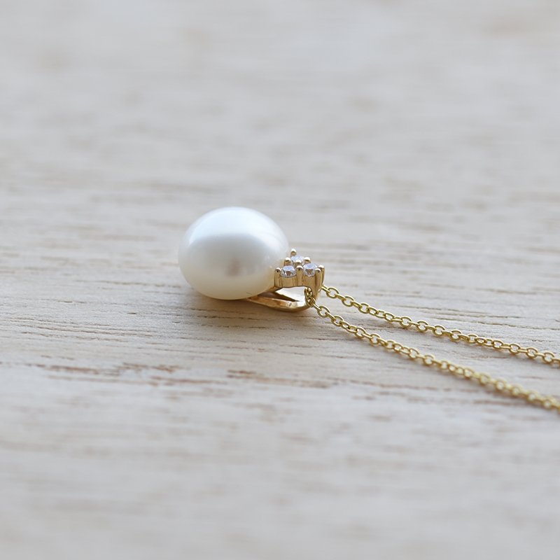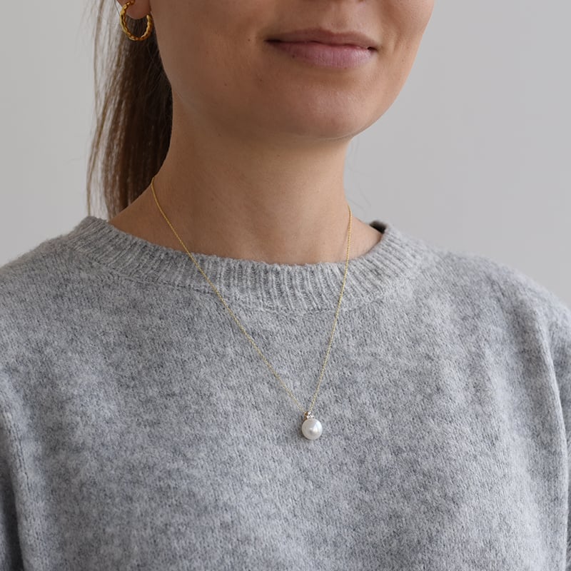 • der Perlenanhänger strahlt sanft dank der Zirkonia