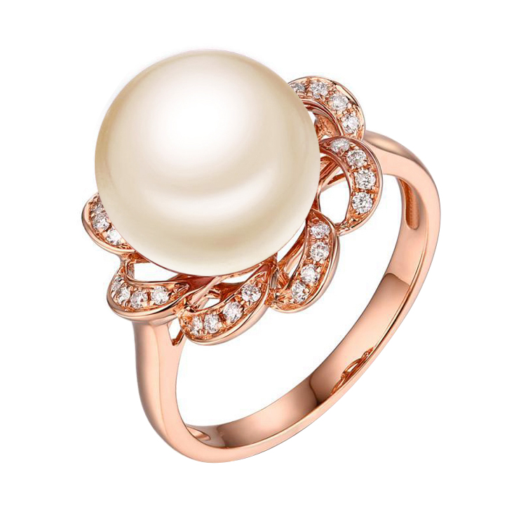 • die Perle ist umgeben von Blütenblättern mit glitzernden Diamanten