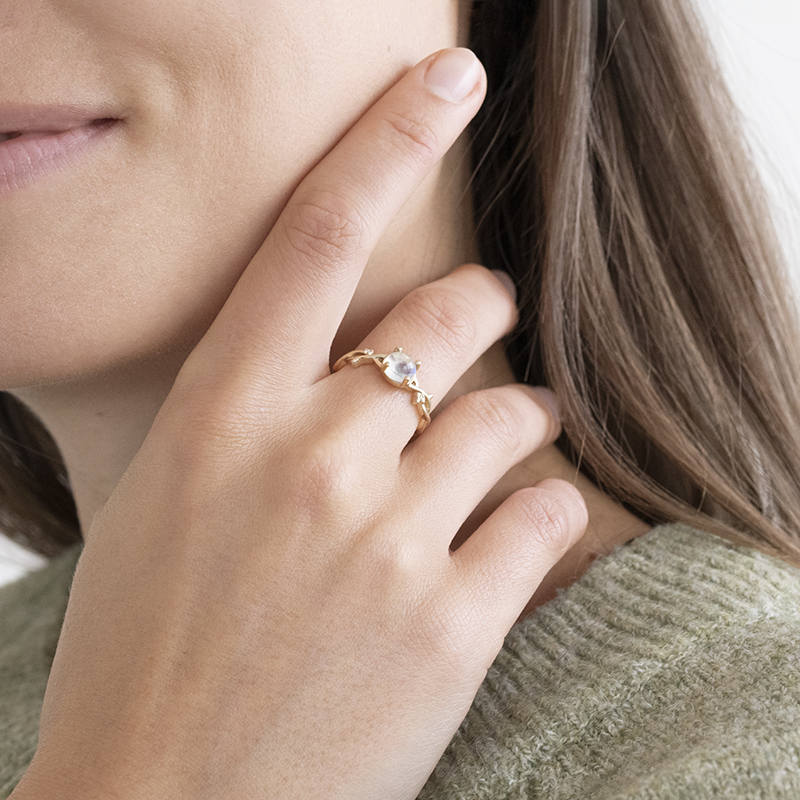 Romantischer Ring mit Mondstein und Diamanten Makena