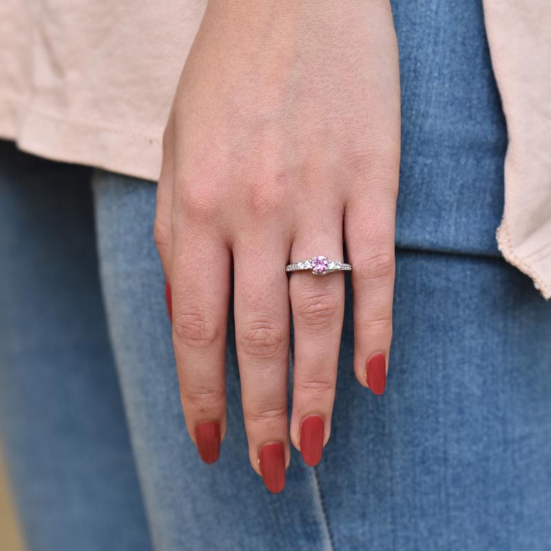 • der elegante Saphir besticht mit dunklen, rosa Farbreflexen