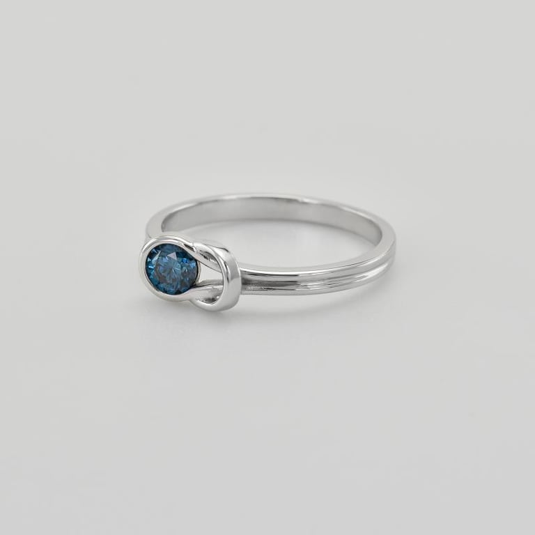 • ein subtiler, rundgeschliffener Diamant in blauer Farbe dominiert diesen Ring