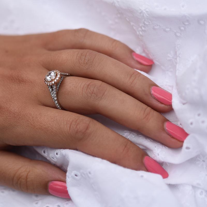 • der Ring im Halostil hat nostalgische Elemente und einen Diamantbesatz, der den zentralen Diamanten umso mehr strahlen lässt