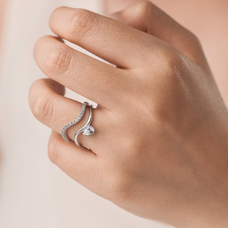 • ein romantisches Set aus einem funkelnden Verlobungsring und einem eleganten Ehering