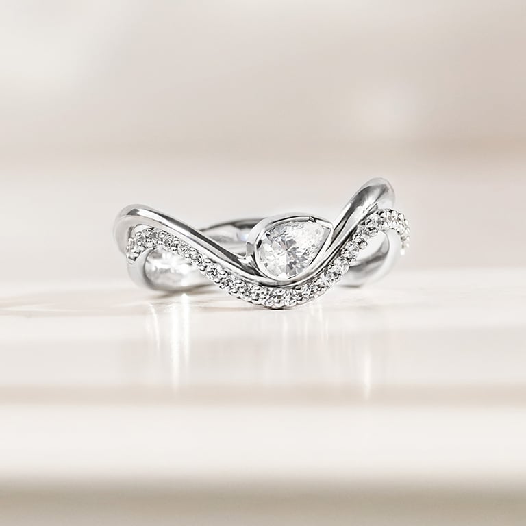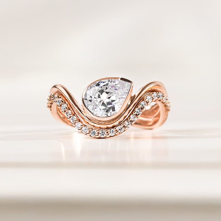 • der atypische Verlobungsring wird von einem natürlichen tropfenförmigen Diamanten dominiert