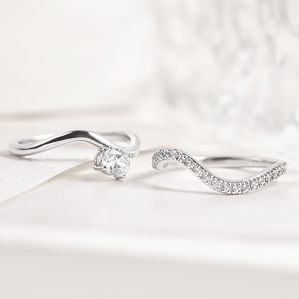 • die Einzigartigkeit des Verlobungsrings wird durch einen sanft geschwungenen Ehering unterstrichen, der mit kleinen Lab Grown Diamanten besetzt ist