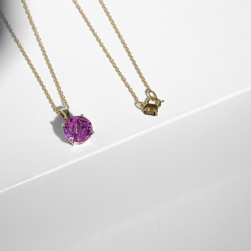 Rosa Saphir in Goldanhänger Icy