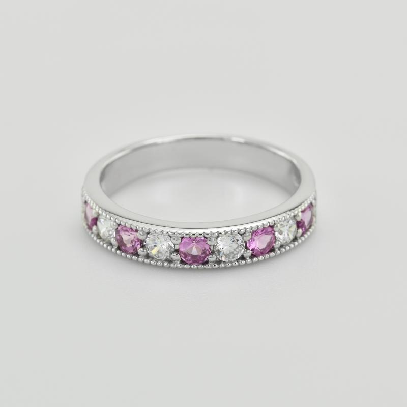 • der rosa Saphir ist durch funkelnde Zirkonia ergänzt