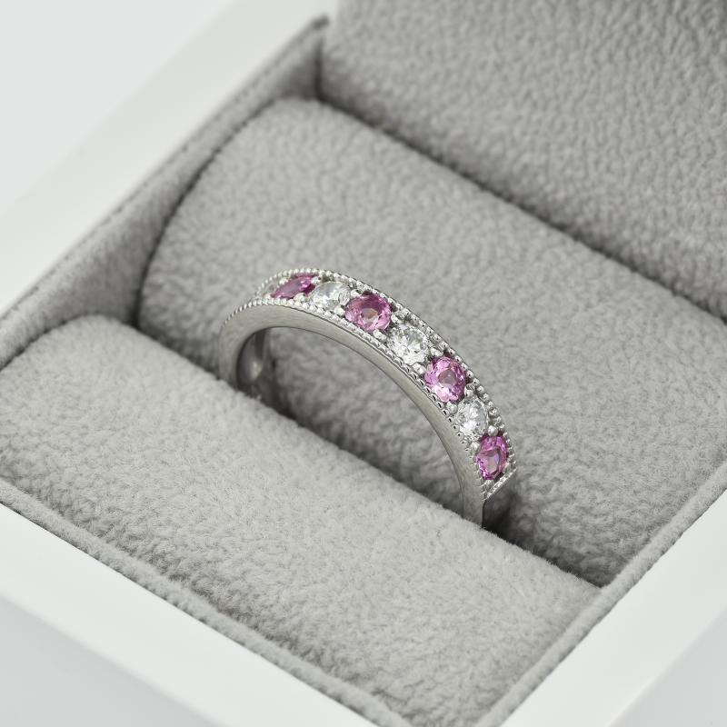 Rosa Saphire im silbernen Memoire-Ring Ednah