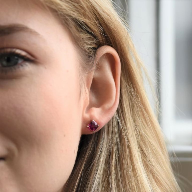 • die Rubine sind hier in einer eckigen Prinzessform geschliffen, die wunderbare Farbreflexe erzeugt