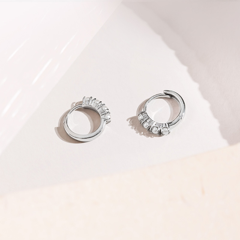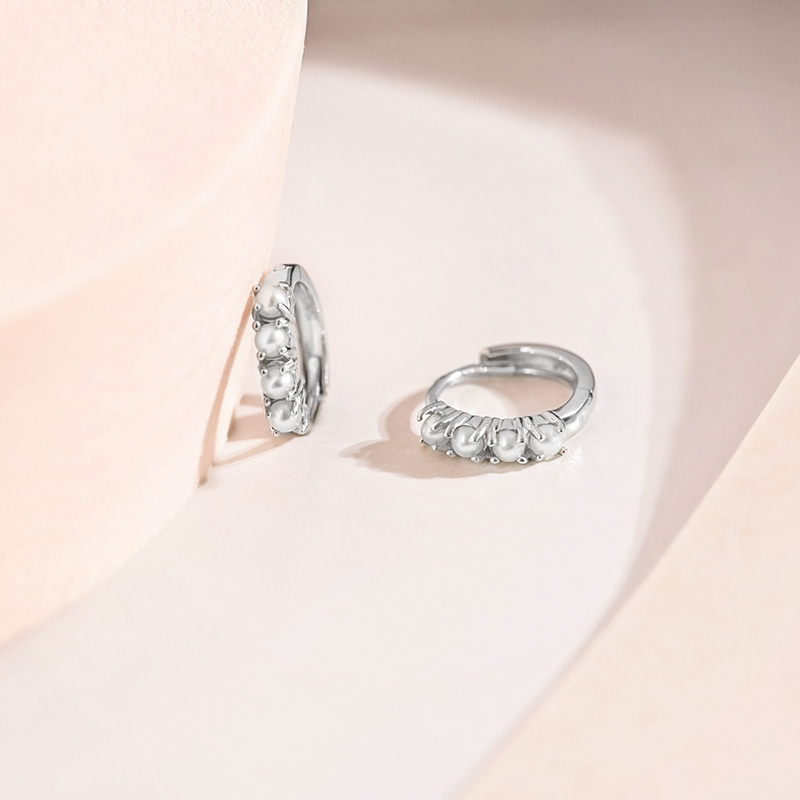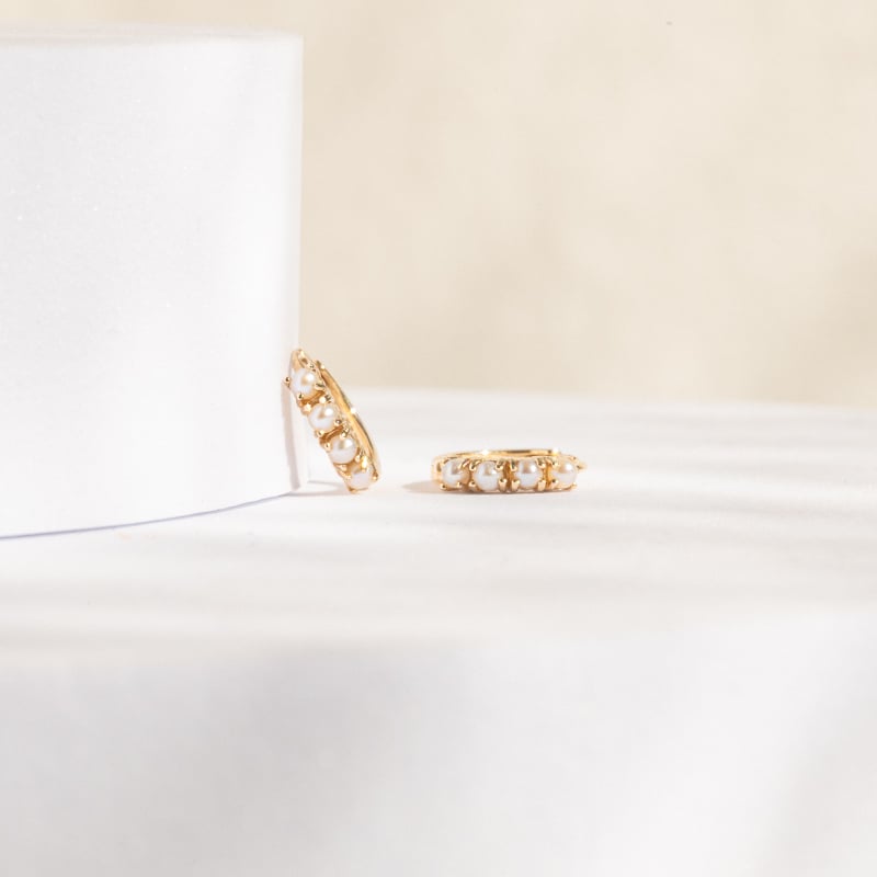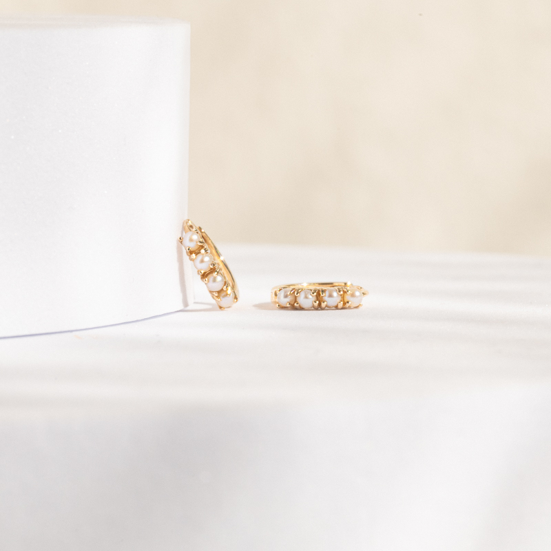 • kleine Ohrringe mit einer Reihe von Süßwasserperlen
