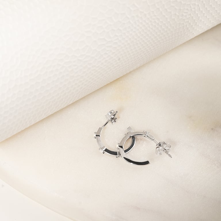 • jede Creole aus recyceltem Gold oder Platin ist mit 3 winzigen Diamanten geschmückt