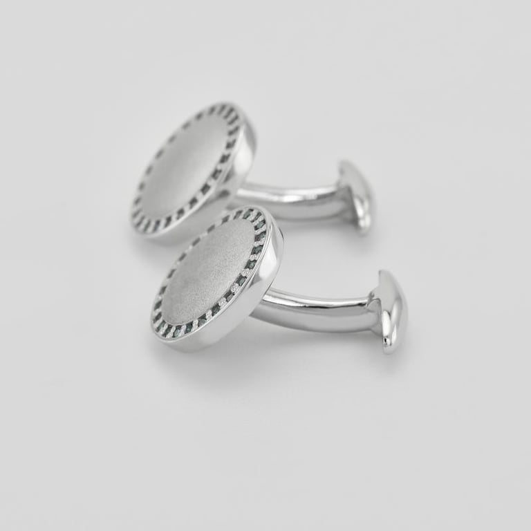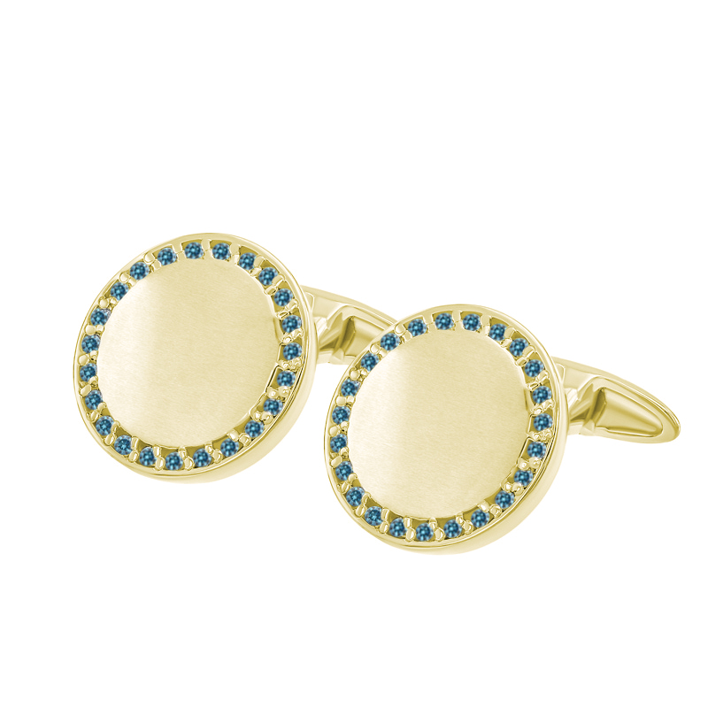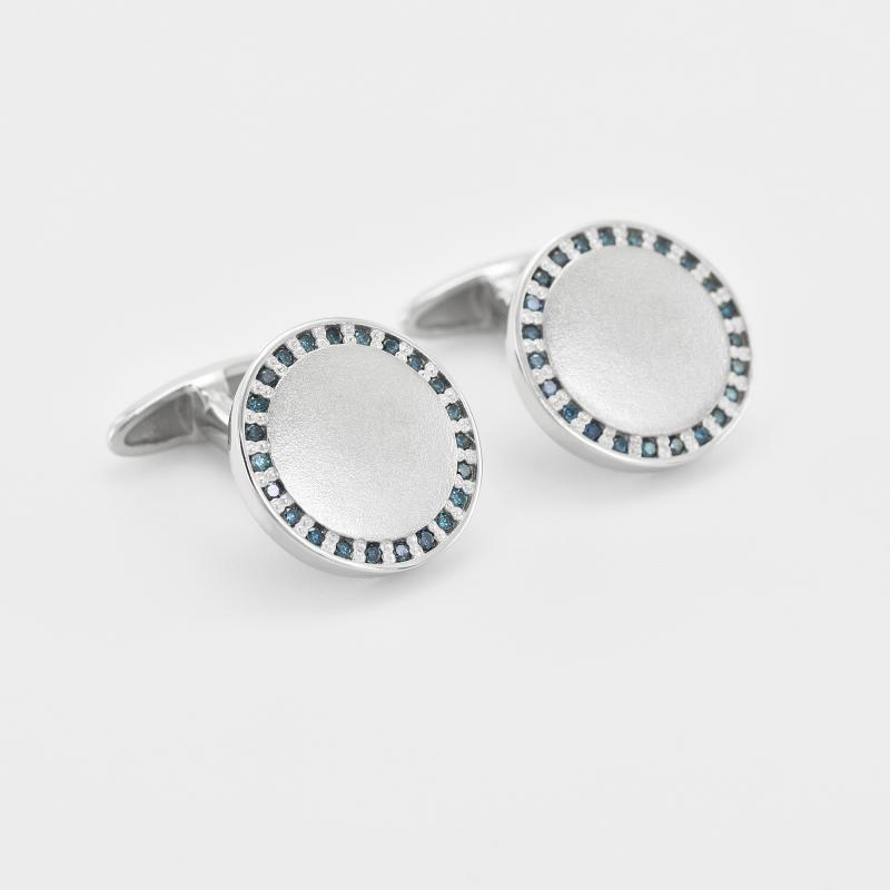 Runde silberne Manschettenknöpfe mit blauen Diamanten Tallis