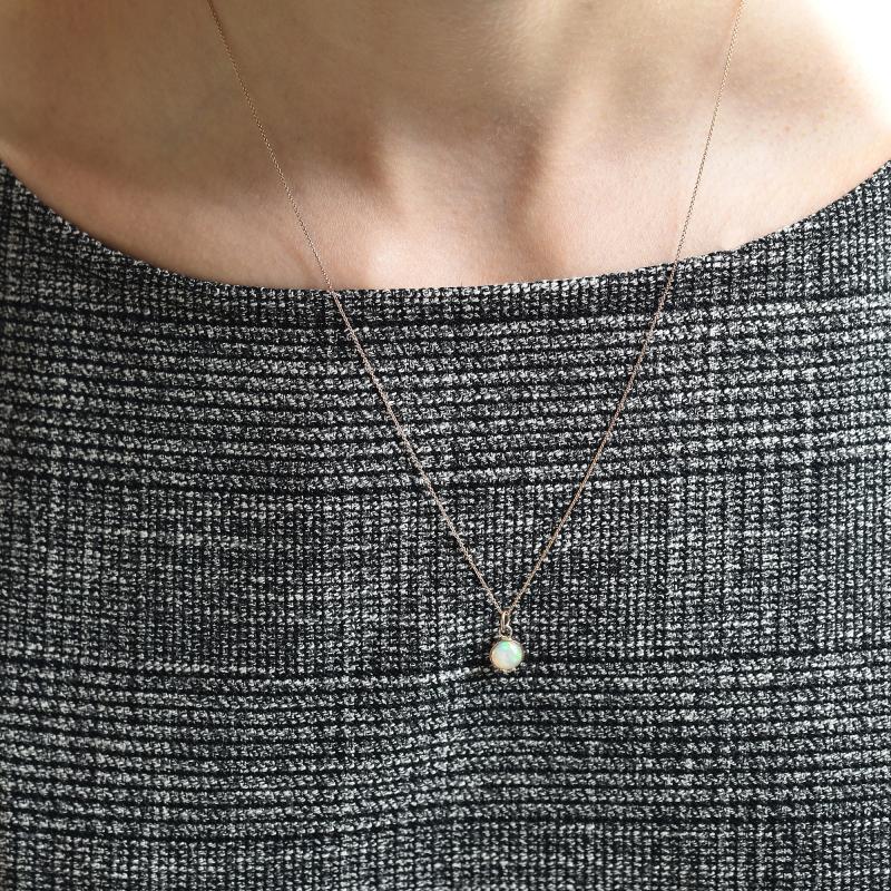• der Anhänger mit einem natürlichen Opal strahlt in den Farben eines sanften Regenbogens