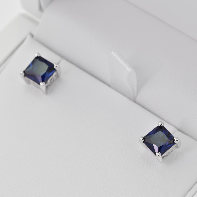 • bezaubernde silberne Ohrstecker mit quadratischen Saphiren