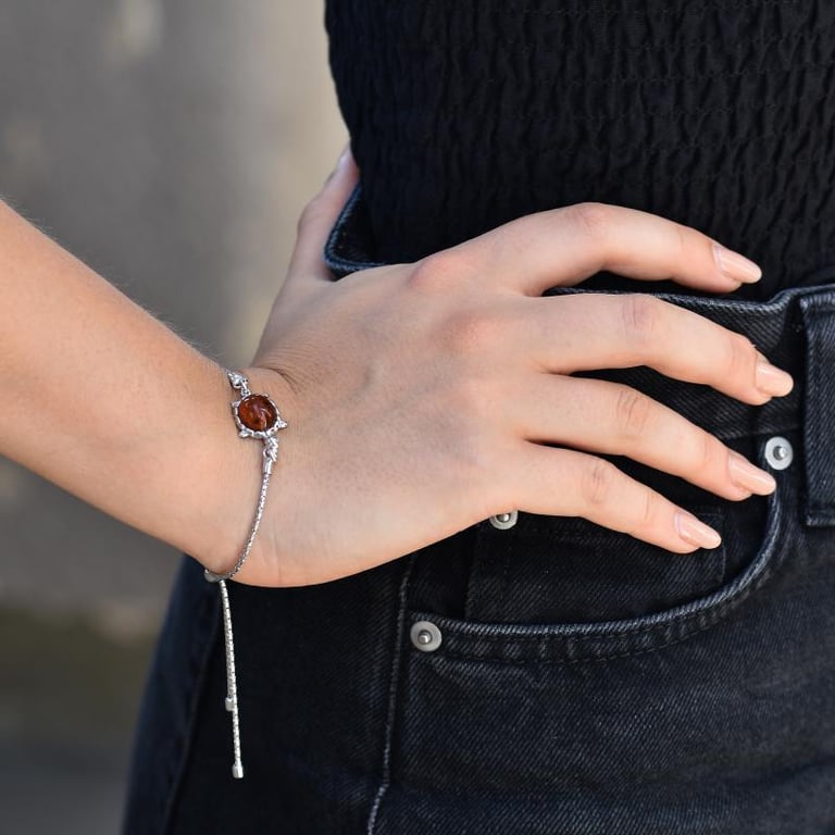 Schildkröte aus Bernstein im zarten Silberarmband Telys