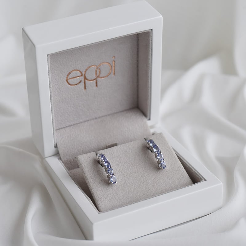 • silberne Tansanite Ohrringe, die in einem intensiven Blauviolett strahlen