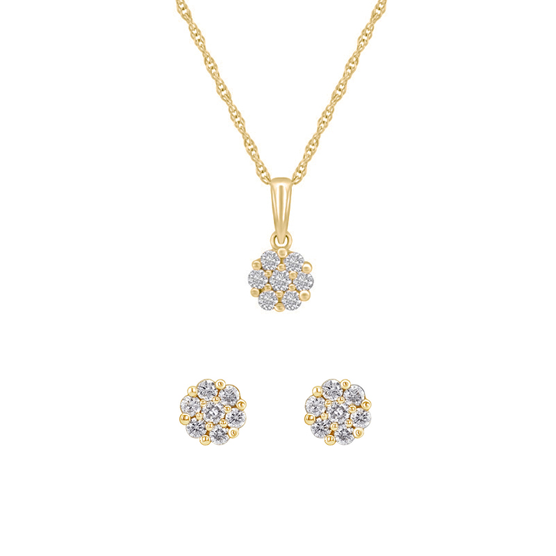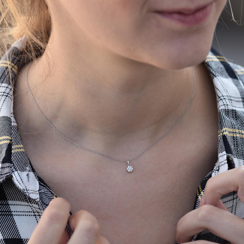 • ein Set aus Kette mit Anhänger und Ohrsteckern, das mit insgesamt 21 Lab Grown Diamanten geschmückt ist