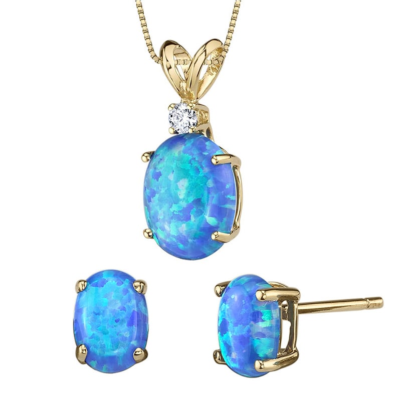 Schmuckset aus Gold mit blauen Opalen und Diamant Gail