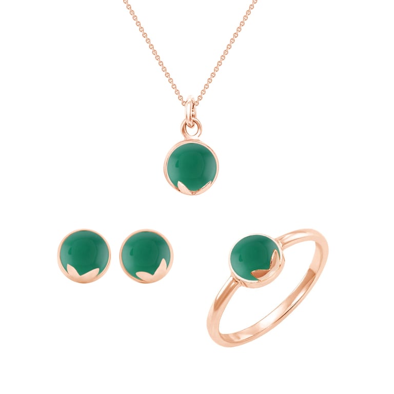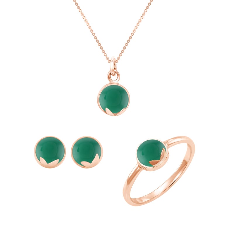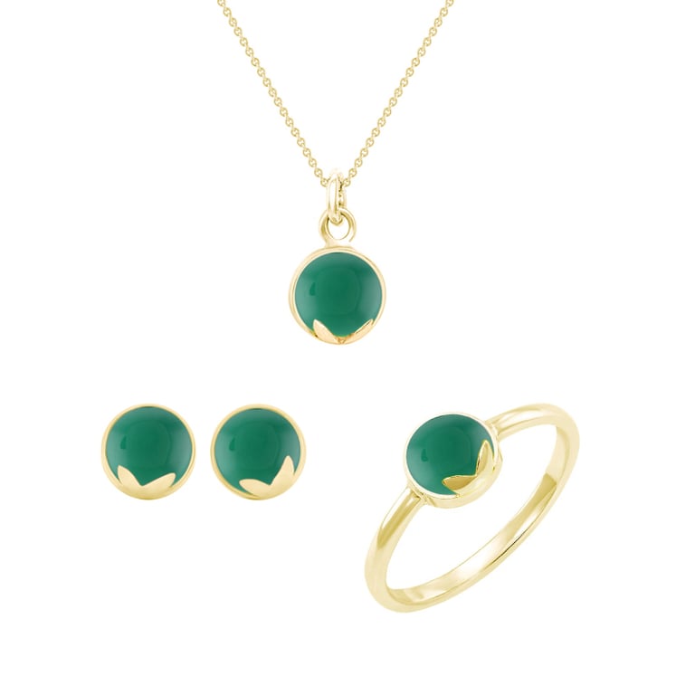 Schmuckset aus Gold mit grünen Onyxen Letizia