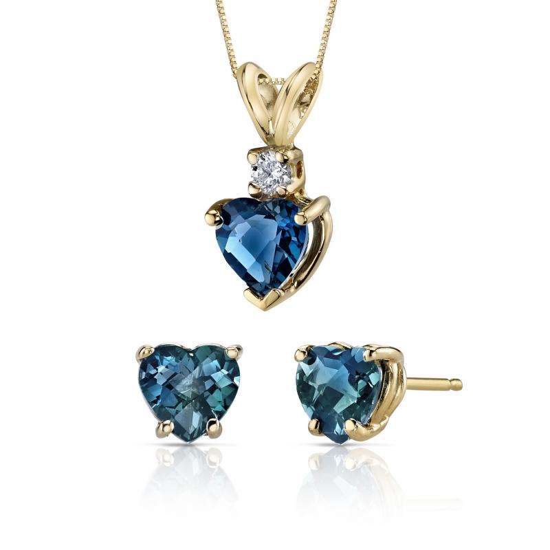 • in das romantische Goldset verliebt man sich durch die londonblauen Saphirherzen und Diamanten sofort
