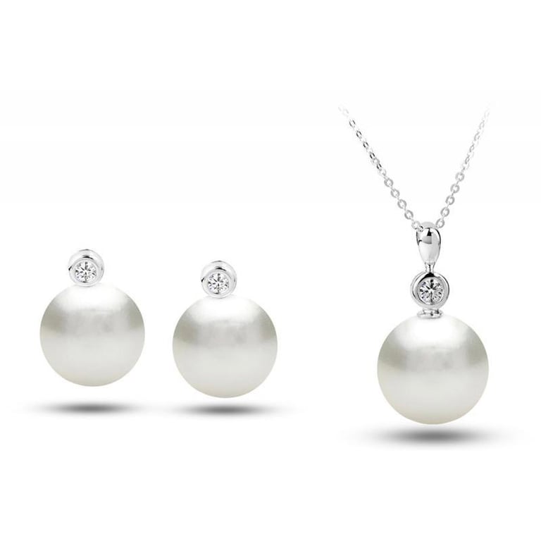 • wunderbar große Südseeperlen schimmern in zarten Weiß und sind mit einzelnen Diamanten ergänzt