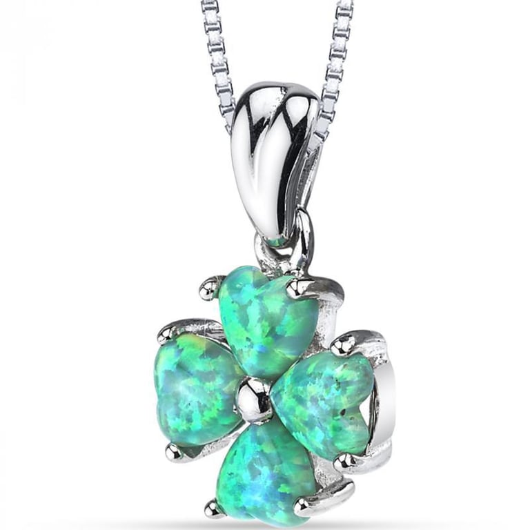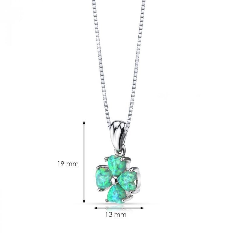 • die herzförmigen grünen, in vielen Farben schillernden Opale sind im Anhänger zu einem vierblättrigen Kleeblatt angeordnet und bringen Ihnen Glück