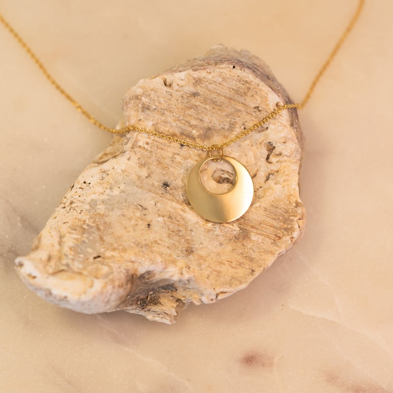 • zwei minimalistische Halsketten mit einem Symbol für Kreis oder Karma