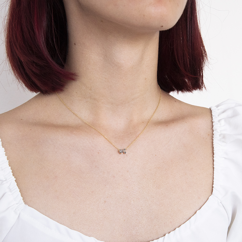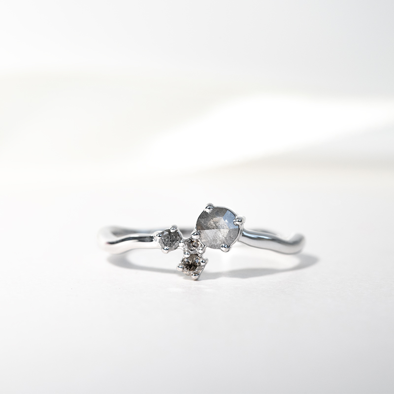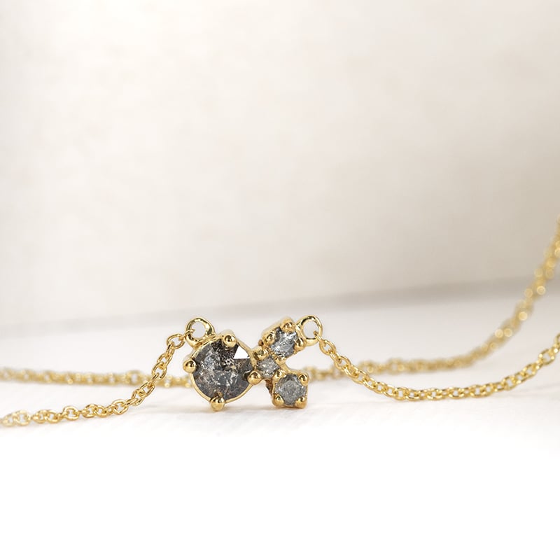 • jedes Schmuckstück ziert ein organischer Cluster aus verschieden großen grauen Salt and Pepper Diamanten