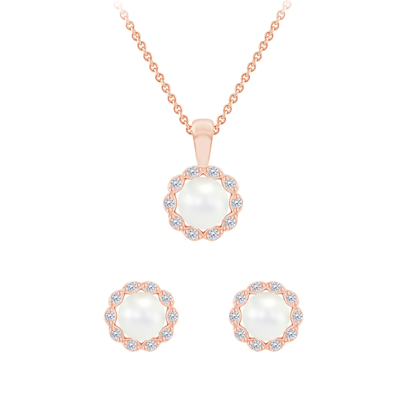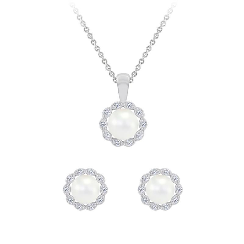 Schmuckset in Silber mit Perlen und Diamanten Kamila