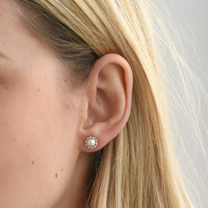 • eine zarte Kollektion aus Ohrringen und Anhänger im Halostil