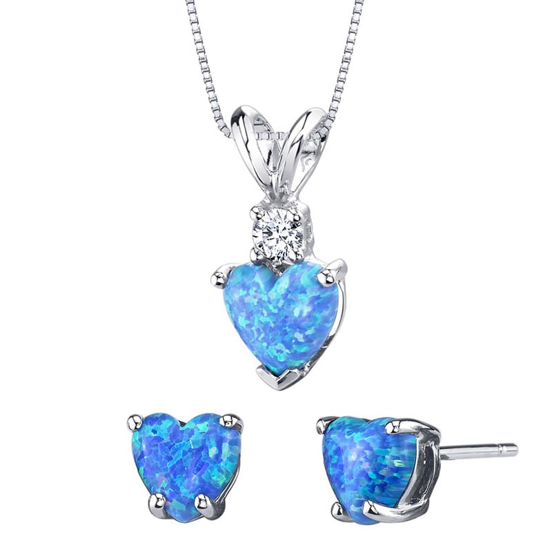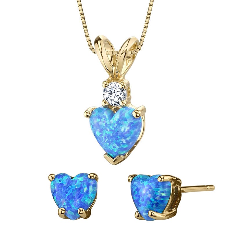 • bei diesem Goldset mit Diamanten strahlen changierende Opalherzen in hellem Blau um die Wette