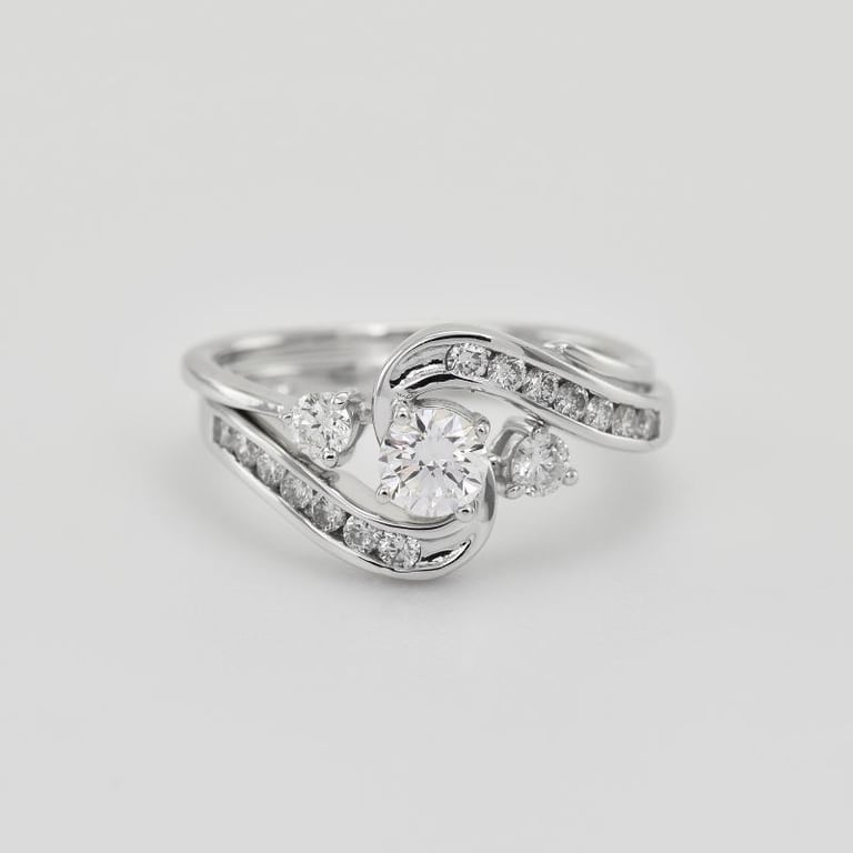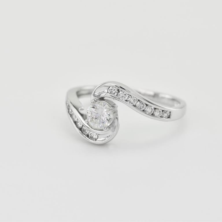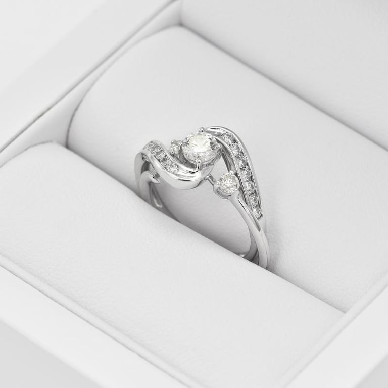 • der Verlobungsring ist mit einem zentralen Diamanten besetzt, der in den Farben des Regenbogens funkelt