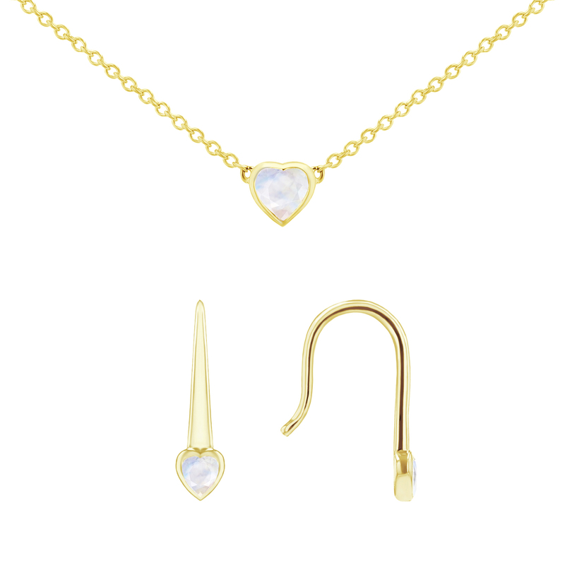 • beide Schmuckstücke sind mit weißen Mondsteinen mit wunderschönen bunten Einschlüssen in Herzform verziert