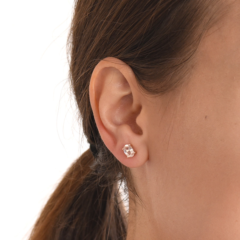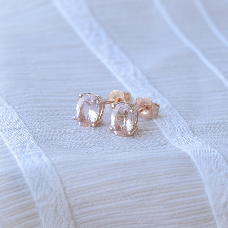 • die pfirsichfarbenen Morganite sind oval geschliffen und haben beim Anhänger runde Seitendiamanten als Begleiter