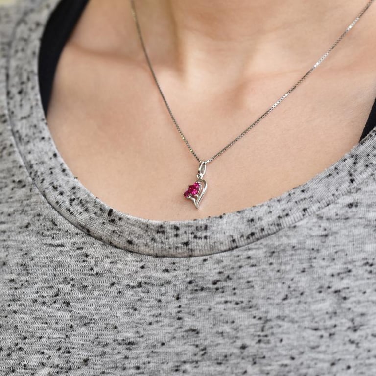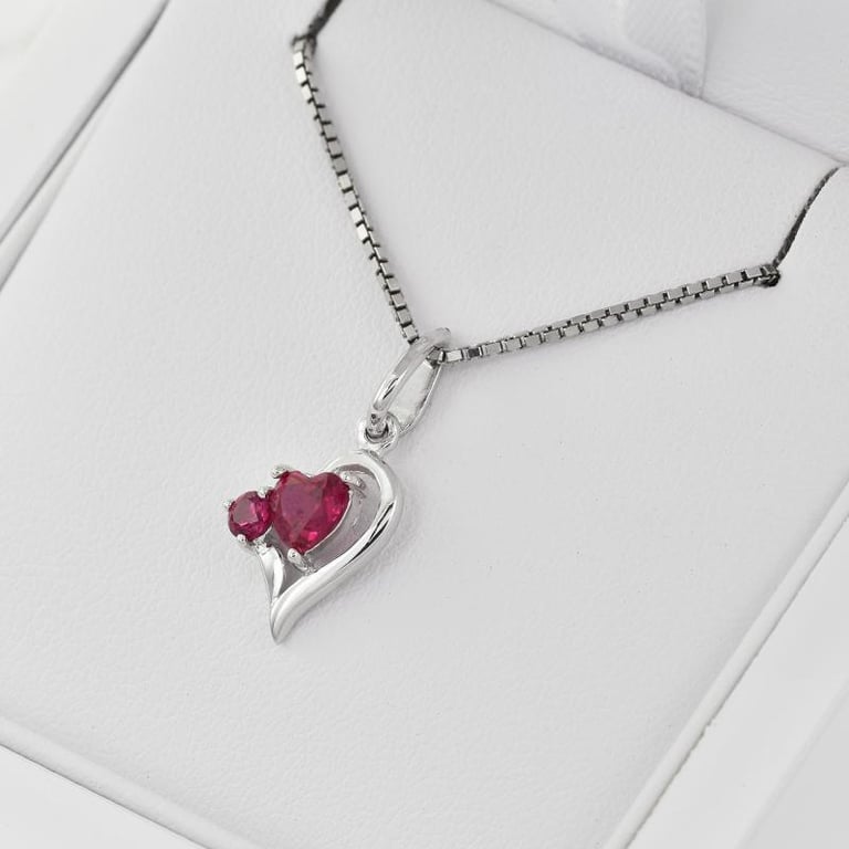 • Set aus Kette mit Anhänger und Ohrsteckern mit synthetischen Rubinen in Herzform