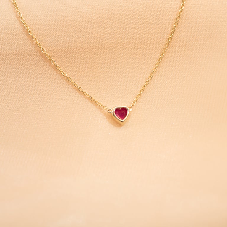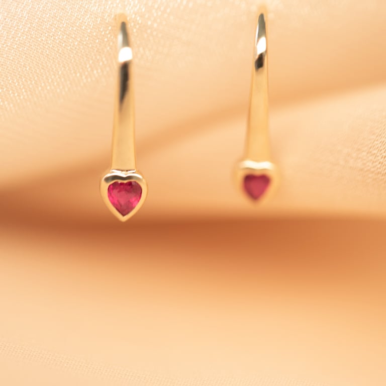 • diesen einzigartigen Schmuck zieren tiefrote natürliche Rubine in Herzform