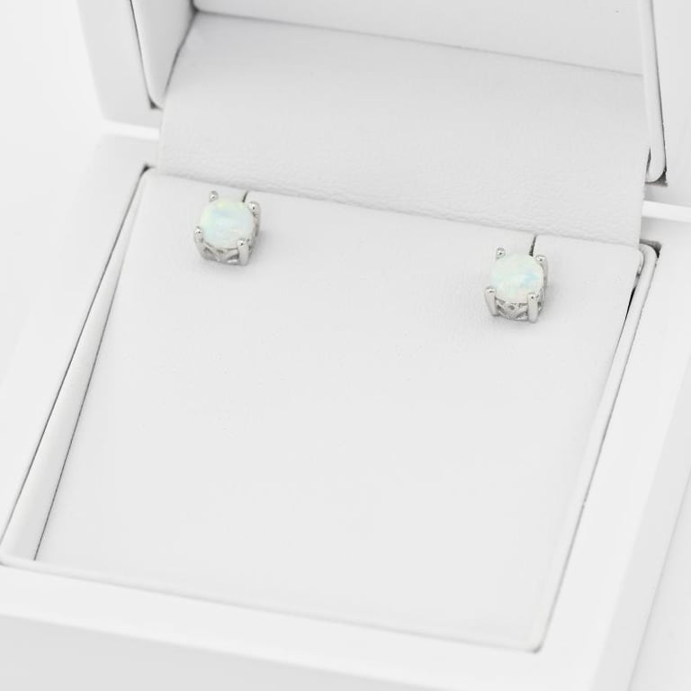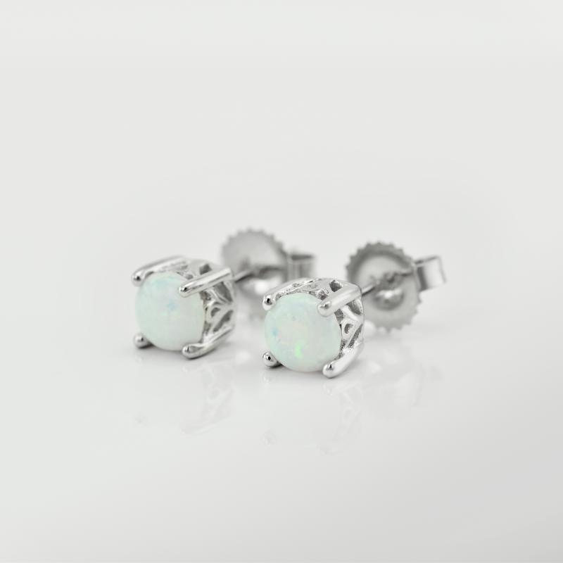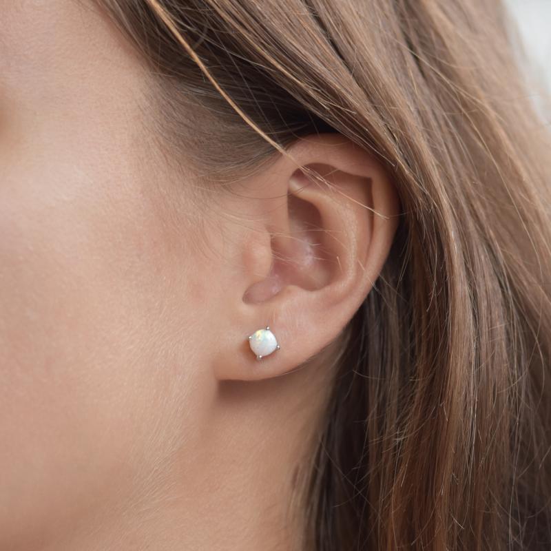 • die weißen, in vielen Farben schillernden Opale in Cabochon-Form sind bei den zarten Ohrsteckern der besondere Kick